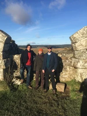 On Hadrian's Wall with my amazing colleagues from Durham, George Gazis, François Renaud, and Sarah Miles (who is taking the photo).